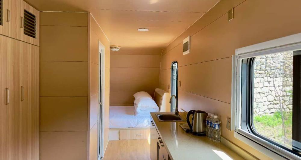 有窗,独立卫浴,独立冰箱,舒适体验住宿2人,最多可住4人,加床加被50元一套。 房车面积:15-20左右,不可以加床 房型1:一张大床,一张沙发床 大床面积:1.5*1.9,沙发床:1*1.5左右 房型2:一张大床,一张上下铺 大床面积:1.5*1.9,上下铺:1*1.5左右 房型3:两张独立的床 房屋配套: 空调、拖鞋、独立卫浴、毛巾、浴巾、六合一洗漱用品(牙刷、牙膏、梳子、沐浴露、洗发露、香皂) 入园须知: 1.营地提供免费停车场; 2.下单成功后不可取消更改(请确认无误后下单); 3.入住时间中午12:00,退房时间次日中午12:00以前; 4.房间内部差别根据实际入住情况定。