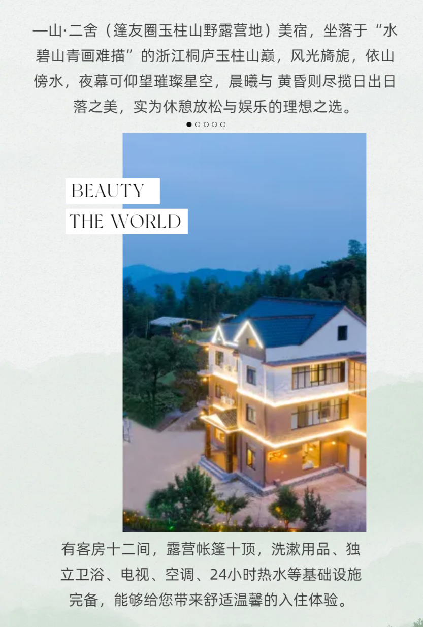 房屋面积:500平方米 | 1-3层 12张单人床 及 5张大床 及 1张榻榻米,有窗 卧室1:2张单人床(1.2米宽) 卧室2:2张单人床(1.2米宽) 卧室3:2张单人床(1.2米宽) 卧室4:2张单人床(1.2米宽) 卧室5:2张单人床(1.2米宽) 卧室6:2张单人床(1.2米宽) 卧室7:1张大床(1.8米宽) 卧室8:1张大床(1.8米宽) 卧室9:1张大床(1.8米宽) 卧室10:1张大床(1.8米宽) 卧室11:1张大床(1.8米宽) 卧室12:1张榻榻米(1.5米宽) 配备一次性洗漱用品,空调,无早餐 一山二舍·精品独栋别墅500平米
