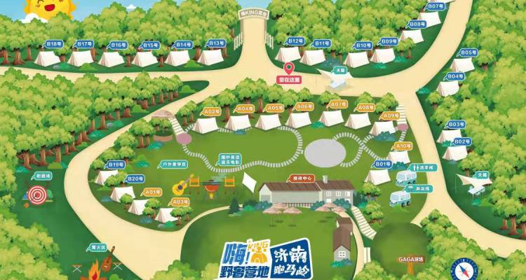 本图为营地的导览图,A开头为大床房,B开头为双床房,如需指定位置的顾客可以自己选择帐篷号哦!