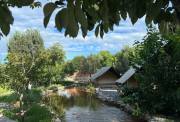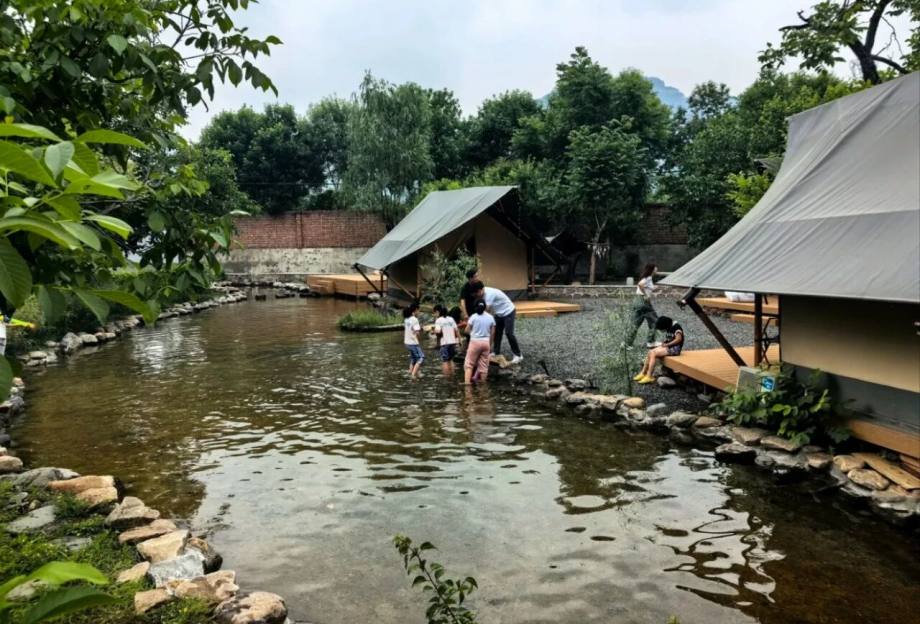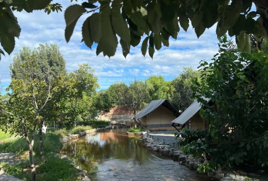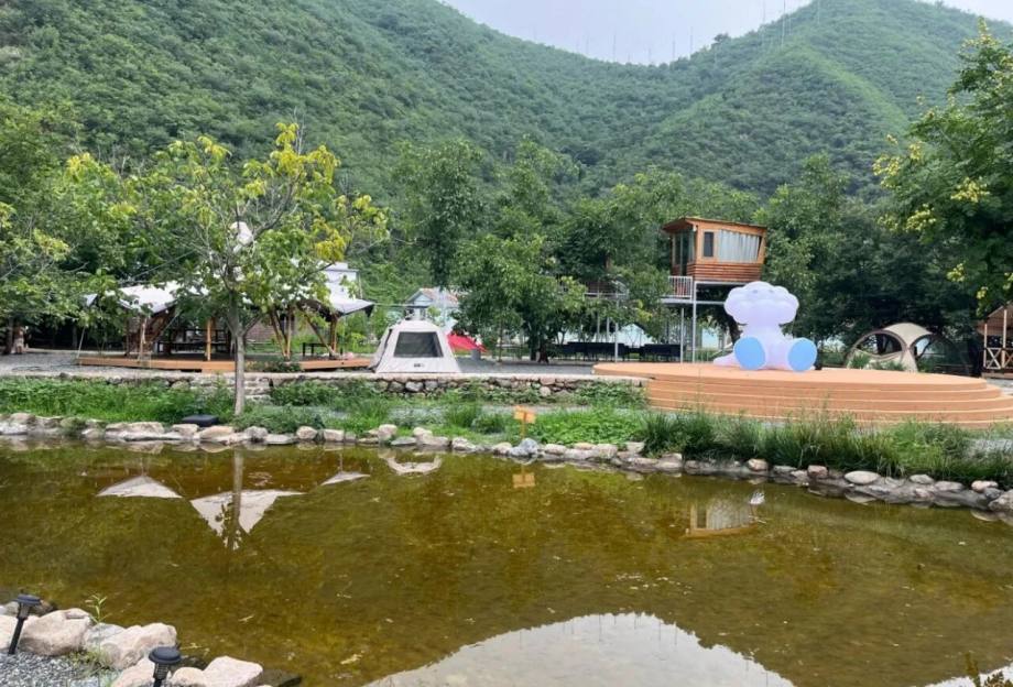 放假只想拥抱大自然,再加上清风拂面,山溪嬉戏,这里统统能实现,营地就坐落在美丽的怀柔青山脚下,潺潺流水环绕,环境真是无敌,离市区又比较近,不想人挤人看风景,来这里就是最好的选择,仿佛到了世外桃源。营地虽然不大,但胜在清静,每个帐篷的距离都挺大,控制人流做得很好,吃饭聊天都随心所欲,地面铺满了石子,即使刮风,也不吹起尘土,细节满分。孩子们蹚水、打水仗、捞鱼摸虾,自由自在,整体是一个大院子,封闭管理非常安心,还有蹦床、滑梯,放手让娃们充分放电。这里特别适合想省心露营的家庭,不用带很多东西,直接点烤肉套餐,炫肉炫到大满足,性价比也是杠杠的,自己带点水果,慢慢吃慢慢喝,简直不要太美好,据说老板做的咖啡也不错哦,咖啡星人有福了。
