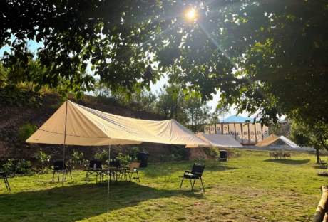 市区到露营地只需要30分钟内,提供天幕租赁搭建,饮品,自助烤肉,歌唱舞台等服务,你只需要带上家人朋友,开心到来。 大小天幕分布在草坪及山林中,无论是悠闲地午后约三五好友吃吃咖啡甜点,还是傍晚时分与家人在星空下烹饪食物,或者就是静静的葛优瘫,发着呆,从天亮到天黑。