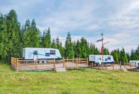 徒步穿越乌蒙大草原,近距离接触大自然。对于热爱运动的朋友来说,这里是融体育、旅行为一体的绝佳选择,无论是滑翔伞体验、山间慢跑还是其他户外活动,都能让你在享受乐趣的同时消耗卡路里。此外,在蓝天白云下静静坐在天幕下,偶尔吹来的山风带来凉爽,夹杂着淡淡的草香。听着鸟鸣和蟋蟀的声音,品尝一杯咖啡,享受让人令人流连忘返的惬意生活。七彩蜗牛房车露营营地位于乌蒙大草原景区内,坐落在北部乌蒙之巅观景台下方。营地设有70个房车及移动木屋营位,并配备丰富的体育玩乐设施,包括滑翔伞培训与体验、风洞、平衡车、漂移车、自行车道、马拉松跑道以及汽车拉力赛赛道,占地面积达1000亩。