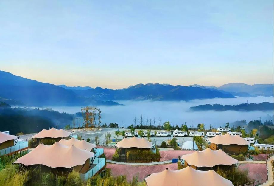 与清风共饮,感受“山隐”生活。舒适房车助你一键开启向往的生活。山隐西江帐篷房内有270度大落地窗,不出房间也可观赏到云端美景。满目青绿,水秀山明,每一样都让人心神往之。