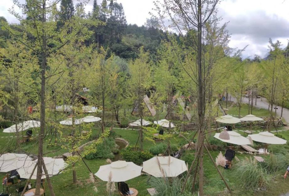 ⼭屿·驻地位于乌当区⽔⽥镇董农村,整个驻地掩隐在一片5000棵杨梅树林里。驻地设置餐饮区(烧烤、私房菜)、露营区、动物互动区、捡鸡蛋区、泳池区、蔬菜种植采摘体验区。
