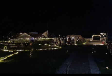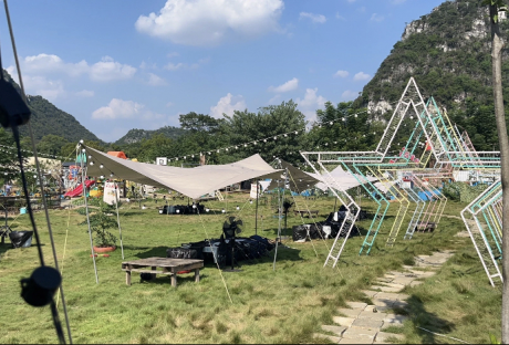 场内有桌子、凳子、烤炉、置物台、氛围灯、木炭、烤网、电风扇、肉夹、盛肉盘、公共娱乐设施、公共KTV欢唱,有厕所有停车场。晚上有氛围灯,超级适合家庭、多人聚会出游。价格按人数有团购(需要提前预约哦)。